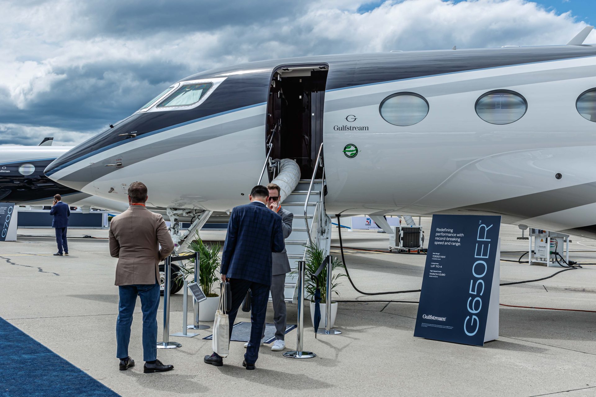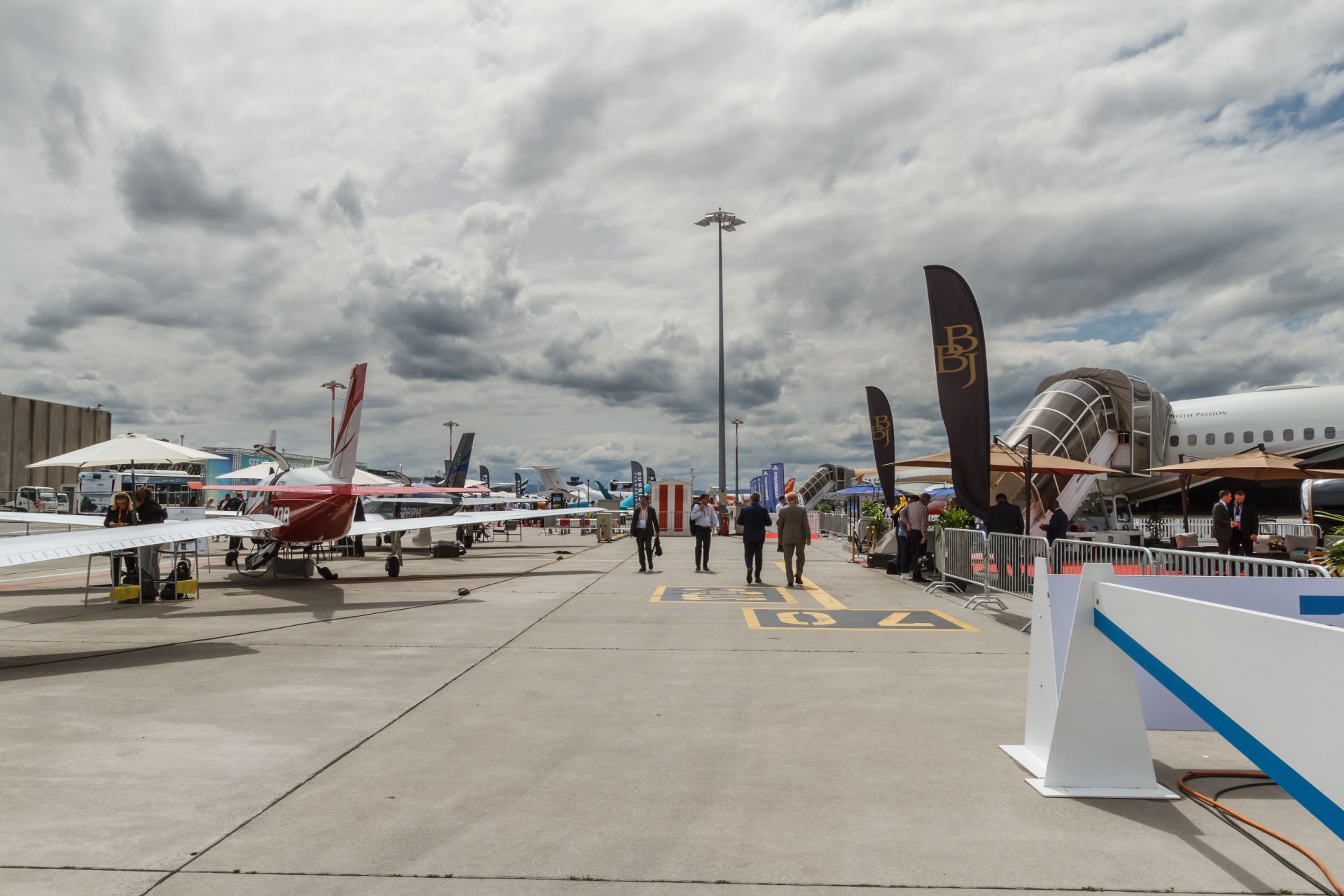 Among the aircraft present at EBACE, including airplanes and helicopters, we were able to admire a Boeing BBJ, Bombardier 7500, Dassault Falcon 6X, Gulfstream 700 and Tecnam P2012 and many more from the companies Airbus, Embraer, Honda Aircraft Company, Pilatus Aircraft Ltd, Textron Aviation, etc.